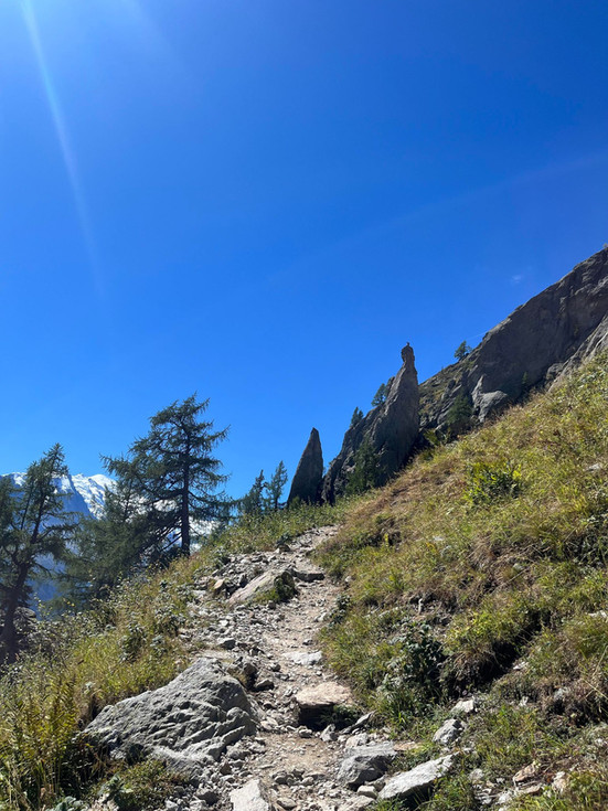 Depuis Courmayeur , La première montée pique ce jour là : 5 kilomètres seulement pour arriver au refuge de Bertone mais presque 700 mètres dénivelé dans les pattes,